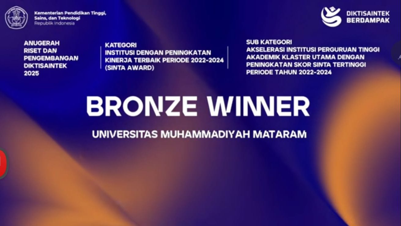 Jakarta, Universitas Muhammadiyah Mataram (UMMAT) kembali menorehkan prestasi membanggakan di tingkat nasional dengan meraih Peringkat Bronze Winner dalam ajang Anugerah Dikti Saintek 2025, yang berlangsung di Jakarta pada 19 Desember 2025. Penghargaan tersebut diraih pada kategori Institusi dengan Peningkatan Kinerja Terbaik Periode 2022–2024 (SINTA Award).