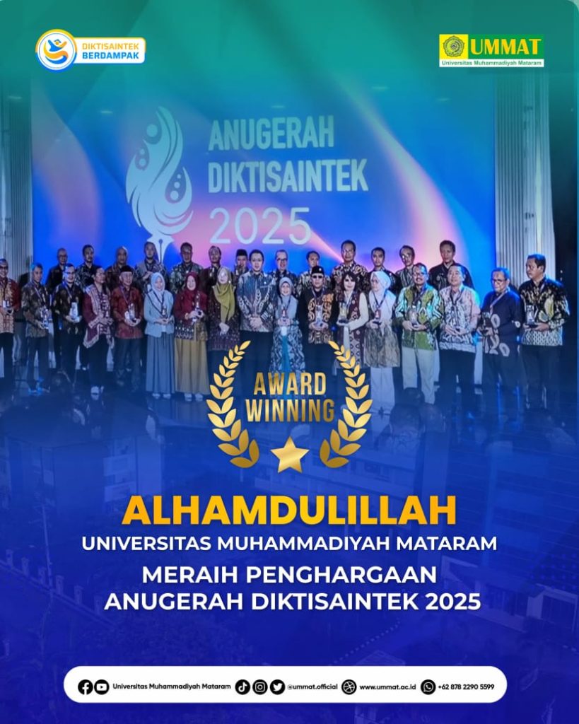 Anugerah Dikti Saintek merupakan agenda nasional yang memberikan apresiasi kepada perguruan tinggi dan insan akademik yang memiliki kinerja unggul dalam bidang pendidikan tinggi, riset, dan inovasi. Raihan Bronze Winner ini semakin mengukuhkan posisi Universitas Muhammadiyah Mataram sebagai perguruan tinggi yang progresif dan berorientasi pada mutu serta dampak berkelanjutan. (HUMAS UMMAT)